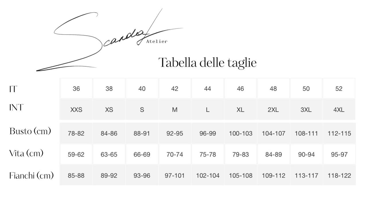 Oltre al servizio di sartoria su misura, l’atelier Scandalo offre assistenza post-vendita per i capi realizzati, inclusi lavaggio professionale, riparazioni e restauri.